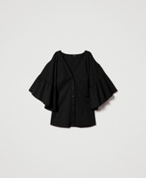 Hemd aus Baumwollpopeline aus der Actitude Collection mit V-Ausschnitt, Dreiviertelärmeln mit gerüschtem Volant und Knopfverschluss.