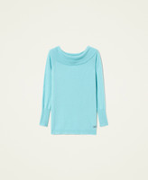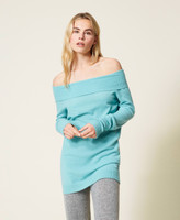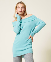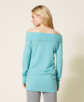 Nahtlos gearbeiteter Pullover aus Kaschmirmischung mit Logolabel aus Jacquard und weitem Ausschnitt für schulterfreies Tragen.
