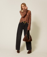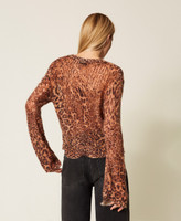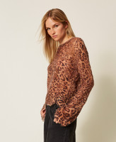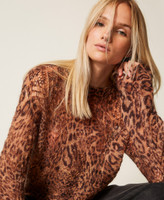 Pullover aus Mohairmischung mit Animalprint und spezieller Verarbeitung, die einen Welleneffekt entstehen lässt. Das locker geschnittene Modell hat einen Rundhalsausschnitt, lange, bauschige Ärmel und breite Bogenränder an den Abschlüssen.