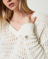 Pullover mit Durchbruchmuster und Pailletten