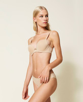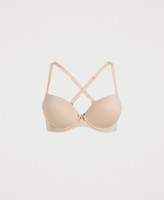 Mit herausnehmbaren Cup-Einlagen wattierter Push-up-BH mit Schleife und am Rücken auch überkreuzt tragbaren Trägern zum Ein- und Aushaken.