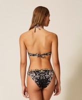 Push-up-Bikinitop mit exklusivem Twinset Foulardprint und Strassapplikation. Wattiertes Modell mit nicht herausnehmbaren Cup-Einlagen und einer mittig positionierten abnehmbaren Schleife. Schnüren, die sich am Nacken binden oder dank der Schlaufen an den Enden auch als Träger nutzen lassen, Endelementen aus goldfarbenem Metall mit Strassbesatz, Schleifenverschluss hinten und Futter.