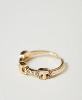 Abgerundeter Ring mit Oval T, eingefasstem transparentem Strass, Öffnung an der Rückseite zur Größenanpassung.