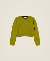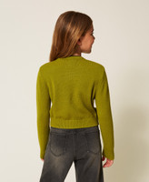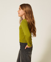 Gerade geschnittener Mädchenpullover aus Viskosemischung mit Kontrastrand am Rundhalsausschnitt, „Oval T“-Logoplakette, langen Ärmeln und gerippten Bündchen.
