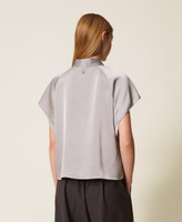 Gerade geschnittenes Hemd aus der Actitude Collection aus Satin mit abnehmbarer Bindeschleife am Hals, kurzen Raglanärmeln und verdecktem Knopfverschluss.