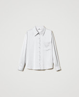 Gerade geschnittenes Satinhemd mit Hemdkragen, aufgesetzter Tasche, Verschluss mit bezogenen Knöpfen und einem Schmuckknopf, langen, eingesetzten Manschettenärmeln mit Knopf, Passennaht mit Quetschfalte am Rücken und herzförmiger Logoplakette aus Metall.