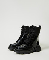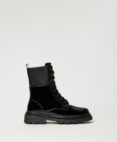 Schnürstiefelette aus Lackleder