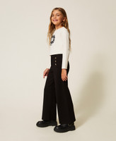Mädchenshirt aus elastischem Baumwolljersey mit aufgesticktem „Oval T“-Logo mit Animaldetail, Rundhalsausschnitt, langen Ärmeln und Regular-Fit.