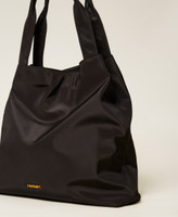 Breiter, geräumiger Shopper aus technischem Gewebe mit dünner Wattierung. Das gefütterte Modell hat zwei weite Henkel zum Tragen an der Schulter, einen Magnetverschluss und einen Logoschriftzug aus Metall.