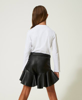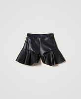 Shorts aus Lederimitat mit Godetvolants in Rockoptik, Seitenreißverschluss und Jerseyfutter.
