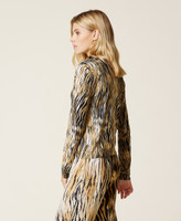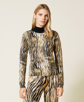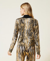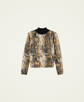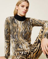 Regular-Fit-Pullover aus Viskosemischung mit Animalprint, Strass am Handgelenk und geripptem Stehkragen.