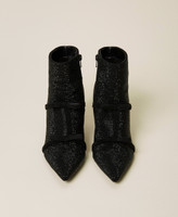 Stiefelette der Actitude Collection mit Allover-Strassbesatz und Schleifen, spitz zulaufender Schuhspitze, Reißverschluss an der Innenseite und Stiletto-Absatz.