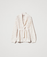 Strickcardigan mit Lochmuster und Gürtel