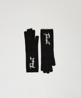 Handschuhe im Glattstrick mit geripptem Rand und kontrastfarbigem Sticklogo im Kettenstich.