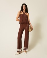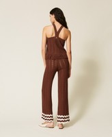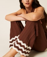 Hose aus der Kollektion Actitude aus Baumwollgarn mit durchbrochenem Rippstrick, Zackenmuster am Abschluss und Fransen. Locker geschnittenes Modell mit elastischem Bund, Shorts-Futter und einer Logo-Plakette aus Metall auf der Rückseite.