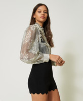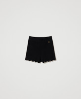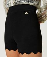 Figurbetonte Strickshorts aus Viskose und Stretch von kreppartigem Griff mit elastischem Einsatz in der Taille und Wellenrändern.