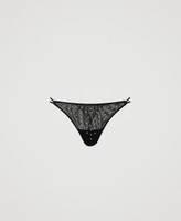 Stringtanga aus Plumetis-Tüll mit kontrastierenden Perlchen an der Vorderpartie und zwei Gummibändern an den Seiten.