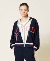 Locker geschnittene Sweatjacke aus der Actitude Collection aus Milano-Strick mit Einsätzen aus glänzendem Nylon mit Logo aus Fadenstickerei.