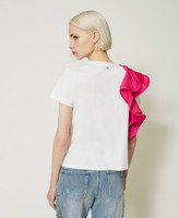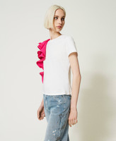 Kurzärmliges T-Shirt im Slim-Fit aus der Actitude Collection aus Baumwolljersey mit Satinvolants und Rundhalsausschnitt.