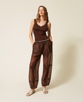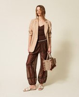 In Italien gefertigtes Stricktop aus Baumwollmischung mit Rippenmuster und Volant aus halbtransparentem Garn am Abschluss. Figurbetontes Modell mit V-Ausschnitt vorne und hinten und einer Logo-Plakette aus Metall auf der Rückseite. Dieser Artikel ist Teil der „Archive“-Auswahl, die von den ikonischsten und beliebtesten Pieces aus den Twinset-Kollektionen inspiriert wurde.