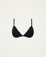 Mit nicht herausnehmbaren Cup-Einlagen wattierter Triangel-BH aus Spitze mit Zierelement an der Vorderpartie und Logoträgern.