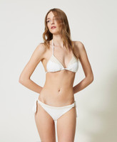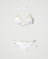 Mit Perlen bestickter Bikini, bestehend aus einem mit herausnehmbaren Cup-Einlagen wattierten Triangel-Bikinitop und einem Tanga mit Seitenschnüren.
