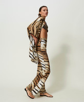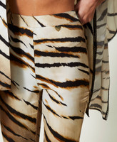 Flare-Hose aus Viskosetwill mit Animalprint und verdecktem Seitenreißverschluss.