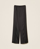 Weit geschnittene Hose aus glänzendem Jersey mit plissierten Einsätzen an den Seiten, elastischem Bund und einem Herz-Logo aus Metall an der Rückseite.