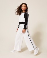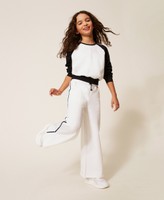 Weite Mädchenhose aus Sweatstoff aus Stretch-Baumwolle mit seitlichen Posamenten und elastischem Bund mit Tunnelzug.