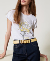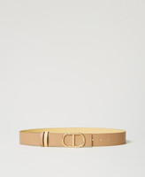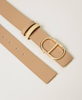 Low-Waist-Wendegürtel aus Leder mit abnehmbarer „Oval T“-Schnalle mit goldfarbenem Finish und zweifarbigen Schlaufen.