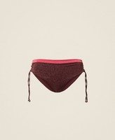 Bikinislip aus zweifarbigem Lurex mit Einsatz in Doppel-Lagen-Optik. Modell mit Tunnelzug und seitlich verstellbaren Bindeschnüren, einfarbigem Stofffutter und einem Herz-Logo hinten.