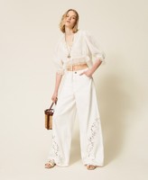 Find the right women’s trousers for you in the Twinset collection: classic and elegant, palazzo or cropped trousers, with original prints or floral patterns, embellished with embroideries and inserts.