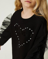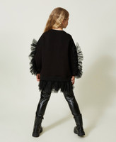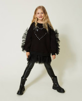 - The sweatshirt has a loose fit, the leggings are skinny.
