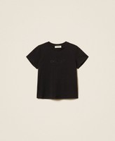 Girls' stretch cotton jersey T-shirt with matching logo embroidery at the front, round neck and short sleeves, regular fit.
