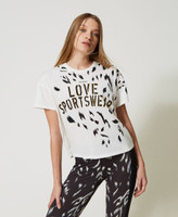 Boxy jersey t-shirt with placed animal print and logo, ribbed round neckline and short sleeves. This style is part of the Sport capsule collection.
