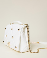 'Cara’ shoulder bag made of full grain Italian calfskin, matte with diamond quilting and pyramid studs. Twinset brings its message of kindness and welcome in all languages of the world: 'Cara' means 'darling' in Italian.