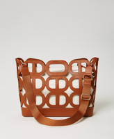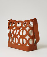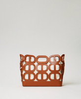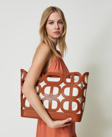 ‘Lila’ shopping basket-style bag made from openwork leather-like material with Oval T motif, magnet closure, removable maxi inner canvas bag. Twinset brings its message of kindness and welcome in all languages of the world: ‘Lila’ means an act of freedom and play in Sanskrit.