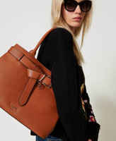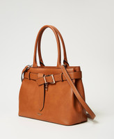 ‘Voyage’ shopper bag made from faux light grain natural calf leather, personalised with buckle and loop with logo and Oval T charm, metal lettering logo. Double handle for on-shoulder wear, removable cross-body strap. Inside, double compartment closed by magnet and third compartment with central zip. The perfect work bag.