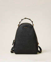 Medium size backpack with rounded pyramid metal studs, zip closure, adjustable shoulder pads, lettering logo.