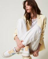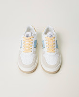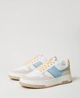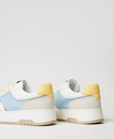 Leather trainers with colour block inserts, suede details, side lettering logo and rubber sole.