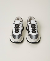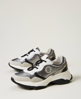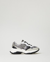 Colour block running trainers with laminated fabric inserts, Oval T on the side, rubber sole.