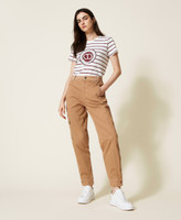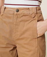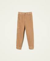 Garment-dyed cotton bull cargo trousers with zip and logo stud button, side pocket.