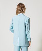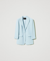 Actitude collection crêpe piquet single-breasted blazer with covered button, long sleeves that can be rolled-up, flap pockets, lining, straight fit.