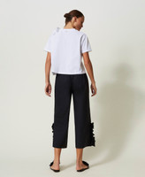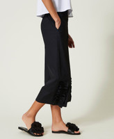 Actitude collection wide leg cropped trousers made from poplin, with tonal ruffle at the hem and side zip.