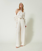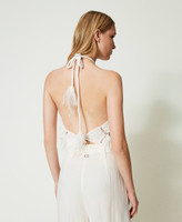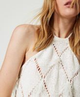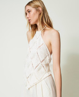 Enhance your wardrobe with this cotton blend top with diamond-pattern openwork finished with hand-embroidered feathers, halter neck with torchon lace, regular fit and Oval T logo plate on the back. Wear it with its matching cardigan.