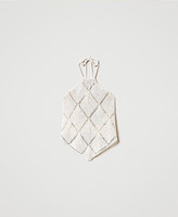 Cotton blend top with diamond-pattern openwork and hand-embroidered feathers, torchon laces at the neck.