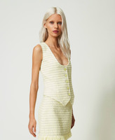 Actitude collection fitted bouclé gilet with round neck and enamelled button closure, lined.