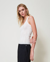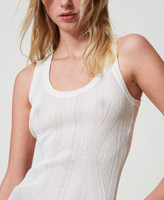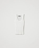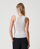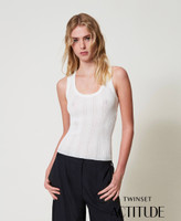 Actitude collection viscose rib knit top, deep crew neck, fitted.