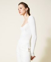 Actitude collection fitted jumper made from ribbed technical viscose with gathered shoulders, slits at the hem.