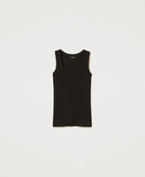 Actitude collection ribbed cotton jersey vest top with lace appliqué, wide shoulder straps and a fitted shape.